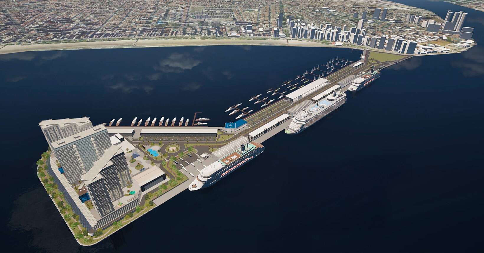 Um dos destaques do projeto será o novo terminal de cruzeiros, planejado para receber até três grandes navios ao mesmo tempo, com mais de 250 atracações por ano em seus três terminais de passageiros.