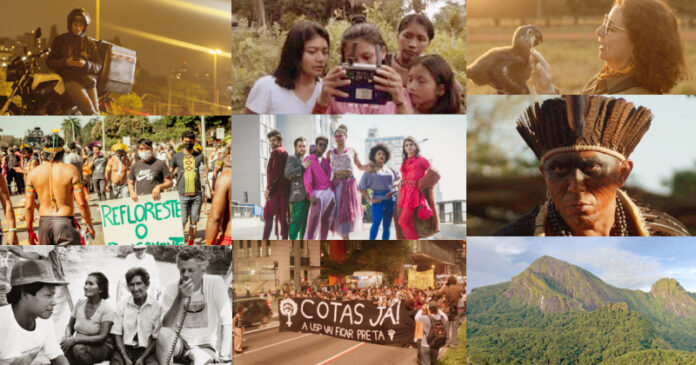 Nove imagens relacionadas a cenas de filmes com temas socioambientais