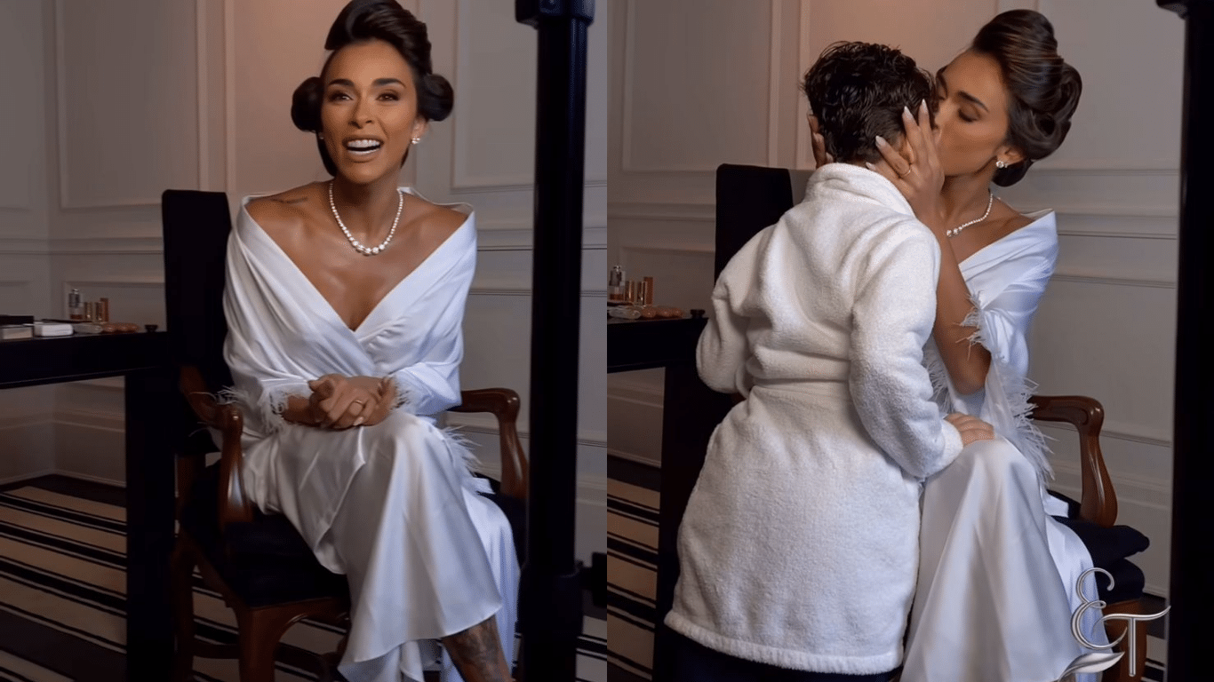 A manhã do grande dia começou com emoção para Tainá Castro. No luxuoso Palácio Tangará, em São Paulo, onde se prepara para o casamento com o jogador Éder Militão, a influenciadora foi surpreendida pela visita carinhosa do filho, Matteo. Já de roupão, maquiada e usando o colar de brilhantes escolhido para a cerimônia, ela foi abraçada pelo menino no quarto do hotel e não escondeu a ansiedade.
