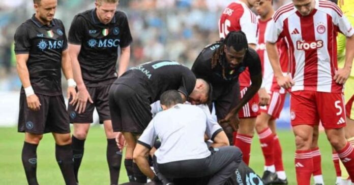 Más notícias para o Napoli. Romelu Lukaku se machucou no amistoso contra o Olympiacos e, nesta segunda-feira (18), o clube confirmou que a lesão é séria. O atacante belga sofreu um problema grave na coxa esquerda e, segundo a imprensa italiana, pode ficar afastado dos gramados por quatro a cinco meses.