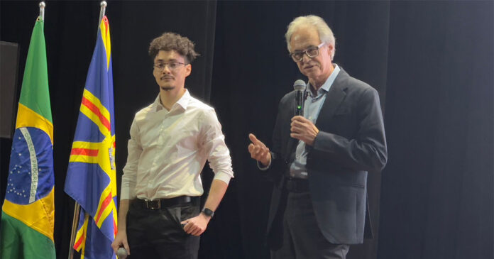 O bolsista de iniciação científica Carlos Eduardo dos Santos e o titular da Cátedra, Mozart Neves Ramos, durante o evento em Mato Grosso do Sul – Foto: Fadeb/MS