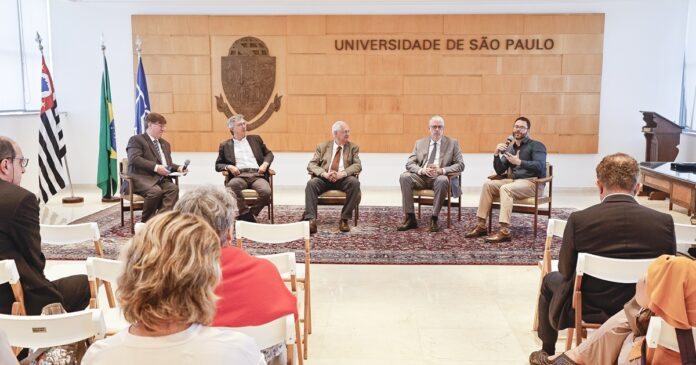 A terceira mesa, “Rumos do Controle Interno”, reuniu representantes da Comissão de Legislação e Recursos (CLR), da Comissão de Orçamento e Patrimônio (COP) e do Grupo de Trabalho de Riscos Institucionais da USP. Mediado por Gabriel Lochagin, o debate contou com Pedro Dallari, Maria Dolores Montoya Diaz e Jaime Crozatti, e abordou perspectivas e desafios futuros, reforçando a importância do controle interno para a governança da Universidade.