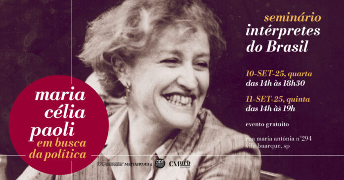 Nos dias 10 e 11 de setembro, o Centro MariAntonia da USP promove o seminário Intérpretes do Brasil: Maria Celia Paoli, em busca da política, organizado pelo Centro de Memória Urbana (CMUrb) da Universidade Federal de São Paulo. O evento é aberto a todos e tem entrada gratuita.