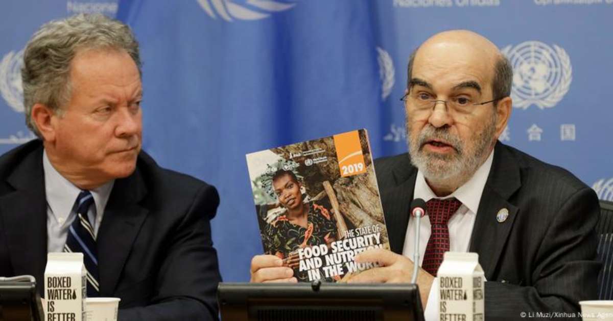 José Graziano (à dir.) apresenta relatório anual da FAO, em 2019